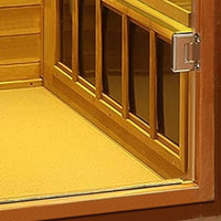 Our Garner-904VS infrared saunas are crafted from premium American Fir wood. Fir wood is an excellent option for outdoor furniture items like picnic tables, ottomans, and chairs. Fir is a type of softwood but relatively strong and durable. And Fir is lighter in color with small tight knots that give its rustic appearance. It is known for its stability and resistance to decay, making it a popular choice for outdoor construction projects. When used in saunas, fir provides a warm and inviting aesthetic.
