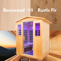 Basswood, Red cedar, and Mahogany are suitable for areas with frequent wind and rain, and it is acceptable to place the sauna in direct sunlight.