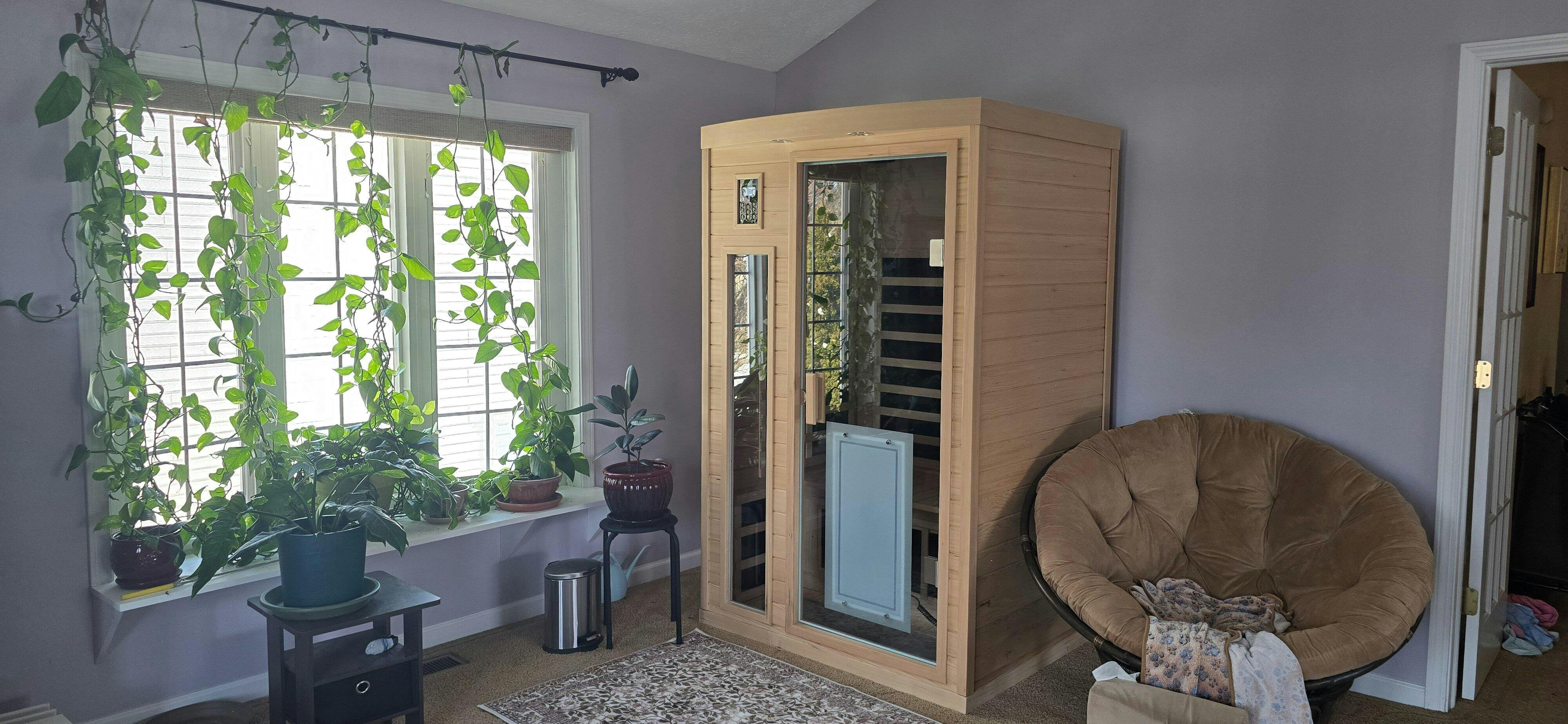 The Maxwell-902BH as a sophisticated infrared sauna of medium size that can still be connected to a standard household outlet. No wiring is required!