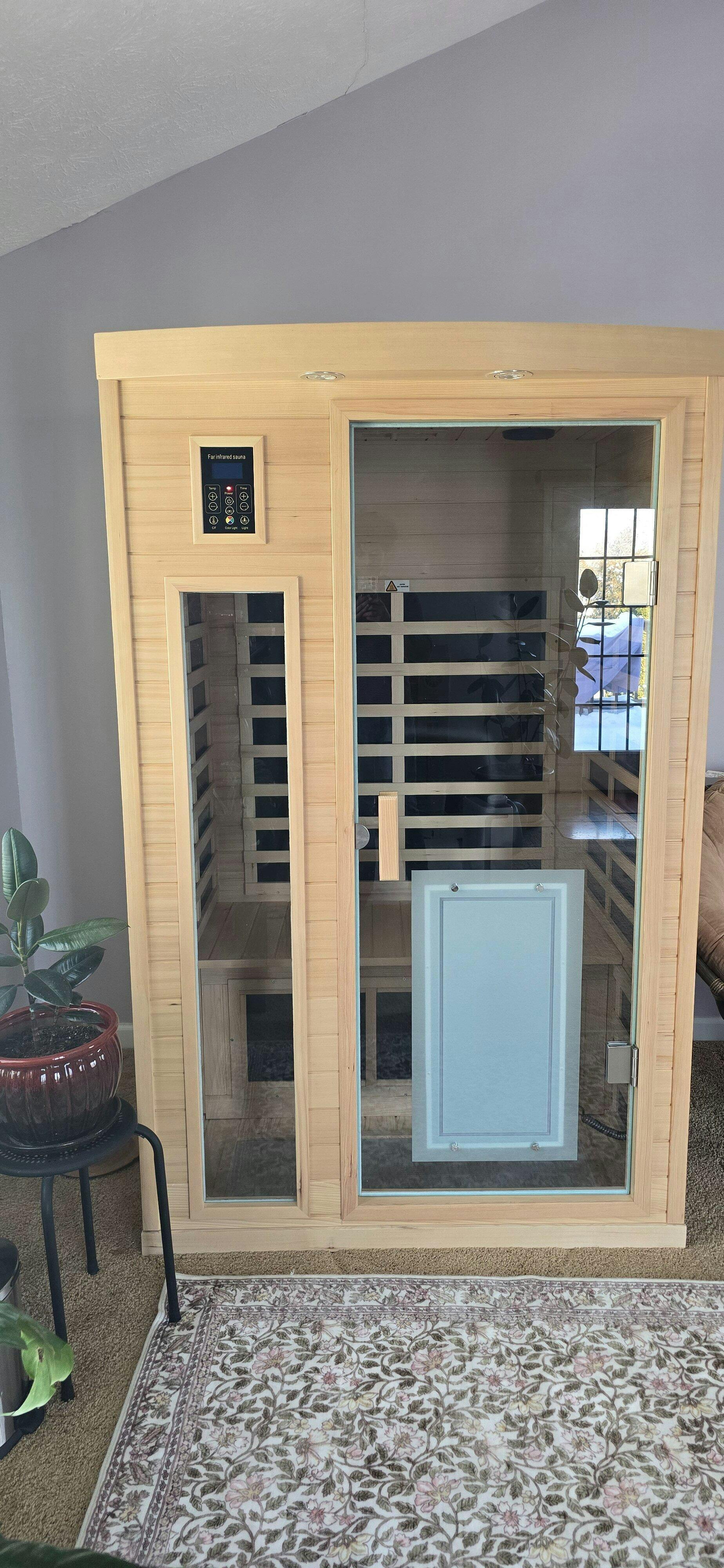 The frame of the sauna is put together with 6 wooden panels: front and back, left and right, top and bottom. You just need to assemble the planks in the order specified in the instructions and attach the motor equipment, carbon heating panels, and glass. Once you have connected the circuit connectors between the planks and plugged everything in, you are good to go.