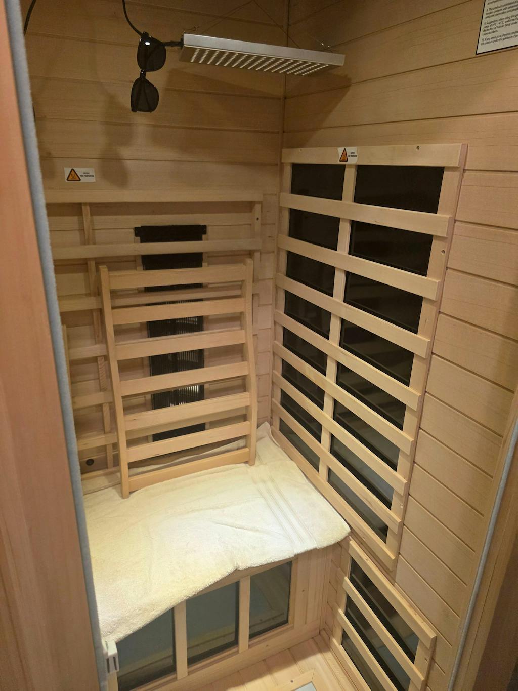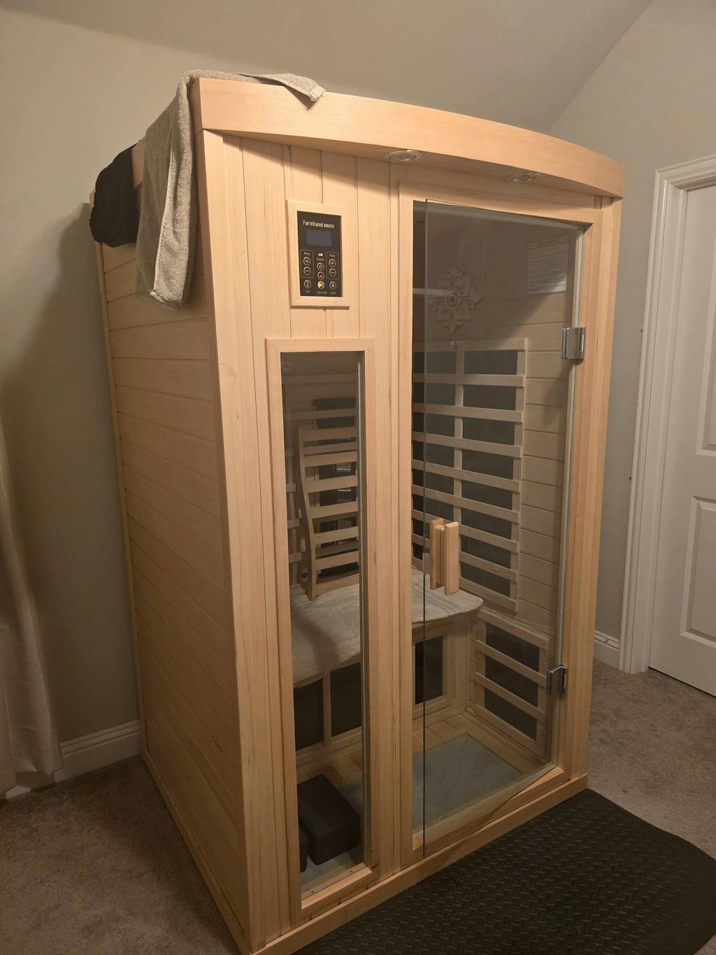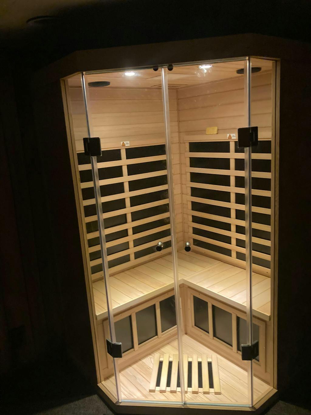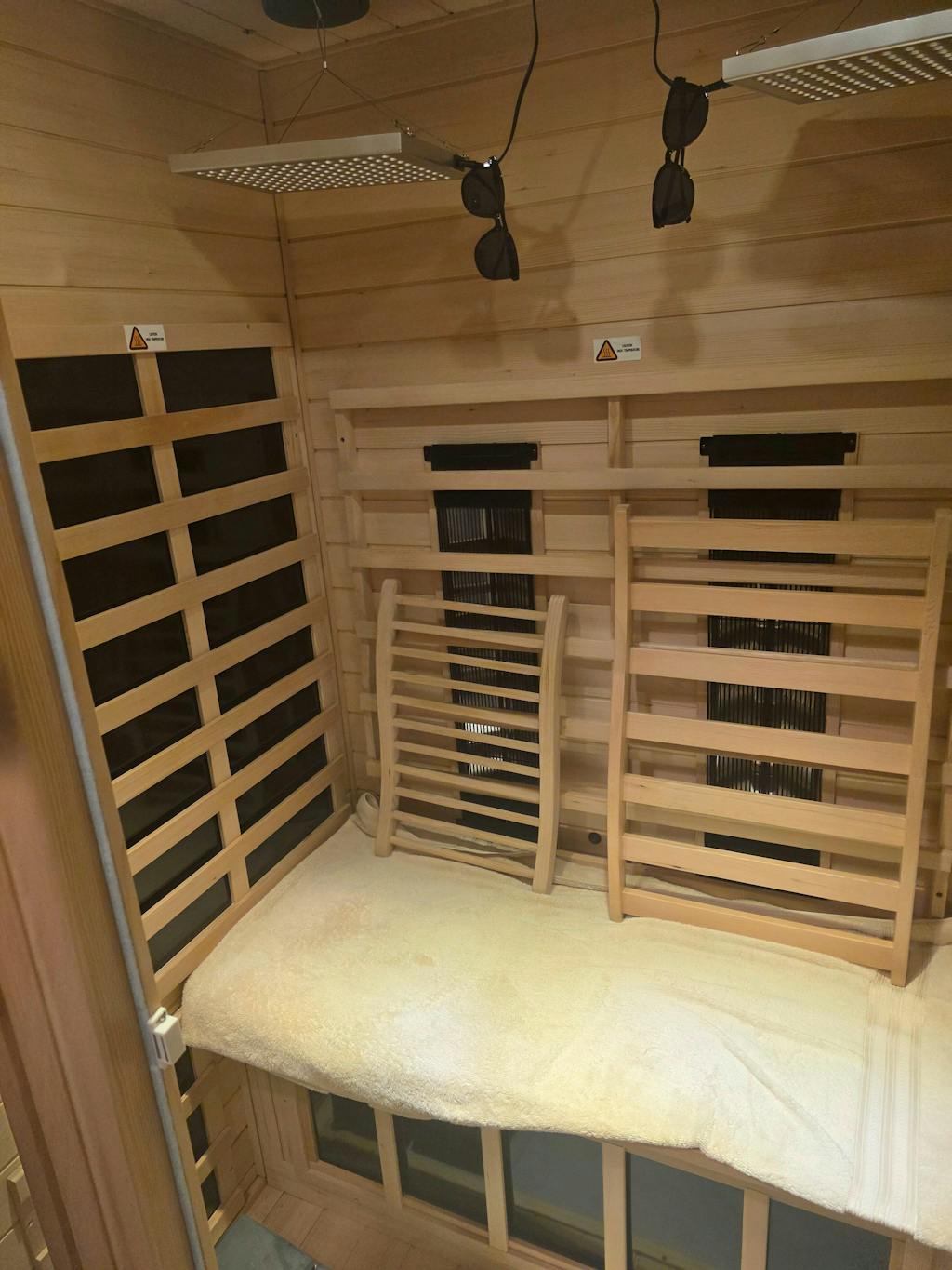 The infrared heaters warm up quickly and provide a really deep, relaxing heat without feeling overwhelming like traditional saunas sometimes can. Even after 20–30 minutes you feel incredibly relaxed and sweat a ton. It’s become part of our routine a few nights a week after workouts.