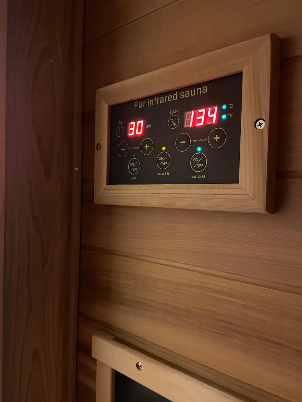 This is my new happy place. I have to stop myself from using this new Sauna daily. The back support is a must. The red light is great. The sauna is perfect. Gets hot fast. Bluetooth is perfect. My entire family love it. Best decision I’ve ever made. Wish I would have made it sooner.
