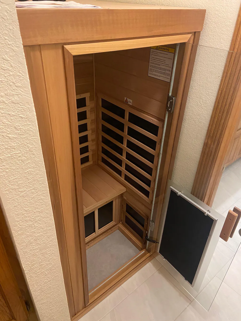 We are remodeling our primary bath and replacing a large, rarely used jacuzzi tub with a large walk-in shower. We’ve always dreamed of having a personal sauna for health and joint stiffness. The sauna we bought fit PERFECTLY in the hole left by the removal of our old walk-in fiberglass shower. Love it, love it, love it. It looks like it was built specifically for this application. High quality sauna. Wish I could give it a higher rating.