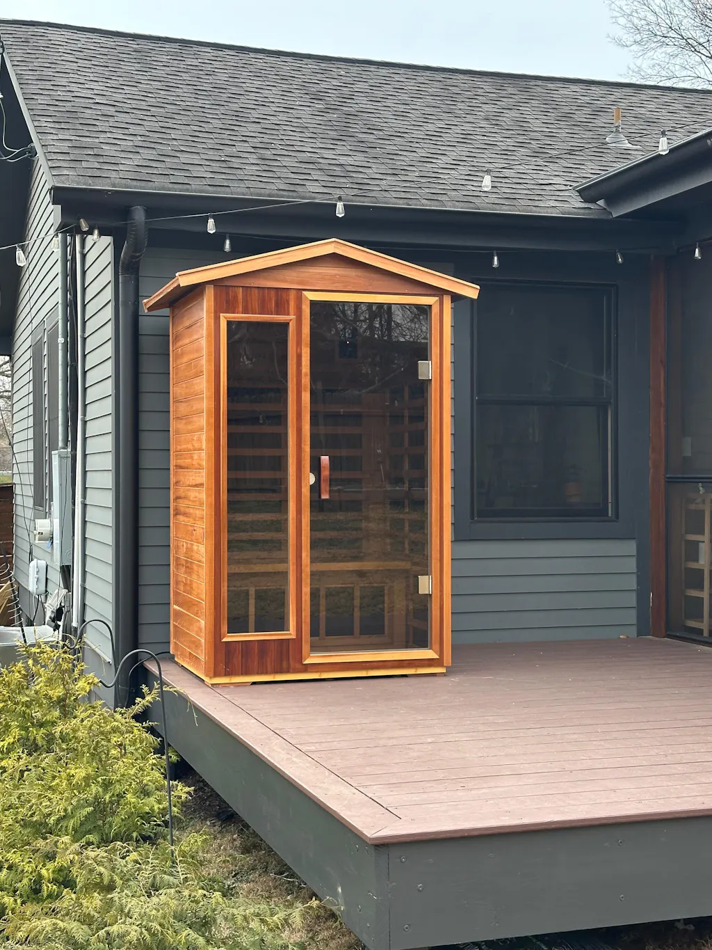 I did months of research and was very picky on what exactly I wanted within my reasonable budget. I landed on the Wearwell outdoor sauna in red cedar. We are located in TN and I was worried about the amount of rain/humid weather we get. I emailed the support team prior to purchase, asked all my questions, and they were very responsive and transparent about the maintenance and upkeep and that it would do well in our climate. A few things to note, the instructions are kinda vague but just make sure all corners/walls are flush! We had to take the roof off twice to get everything set. It is a 2 person job but we did it in 2.5-3 hrs from opening boxes to installing to breaking them down. I had a problem with the seal which caused a draft inside. I emailed support and they rectified the problem quickly and it’s been perfect since. It’s heats up to 149 in 30 mins or so. I’ve had the sauna up and running for 6 weeks now and we love it! If you’ve been going back and forth on whether to buy, just do it! you won’t regret it!