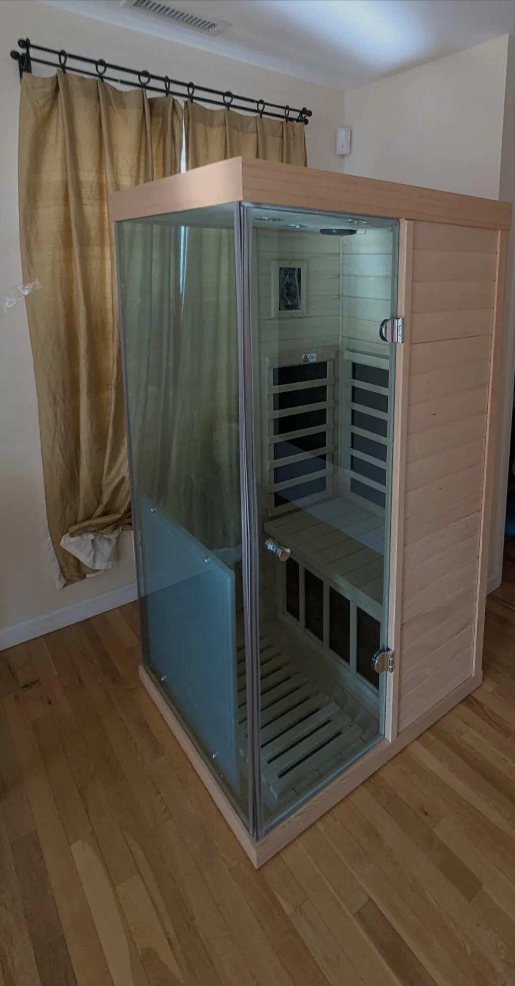 This sauna is exactly what I had hoped it would be. It arrived quickly from the time I ordered it. The instructions were so easy to follow. The components were also easy to put together. The sauna itself is very well made, the mahogony is beautiful This is truly a one person sauna. The only regret I have is that I didnt order with red light therapy. Hopefully they may have add on in the future.