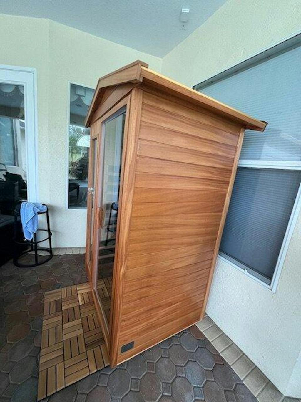 The Mix-902VTD as an outdoor sauna that can still be connected to a standard household outlet. No wiring is required!
