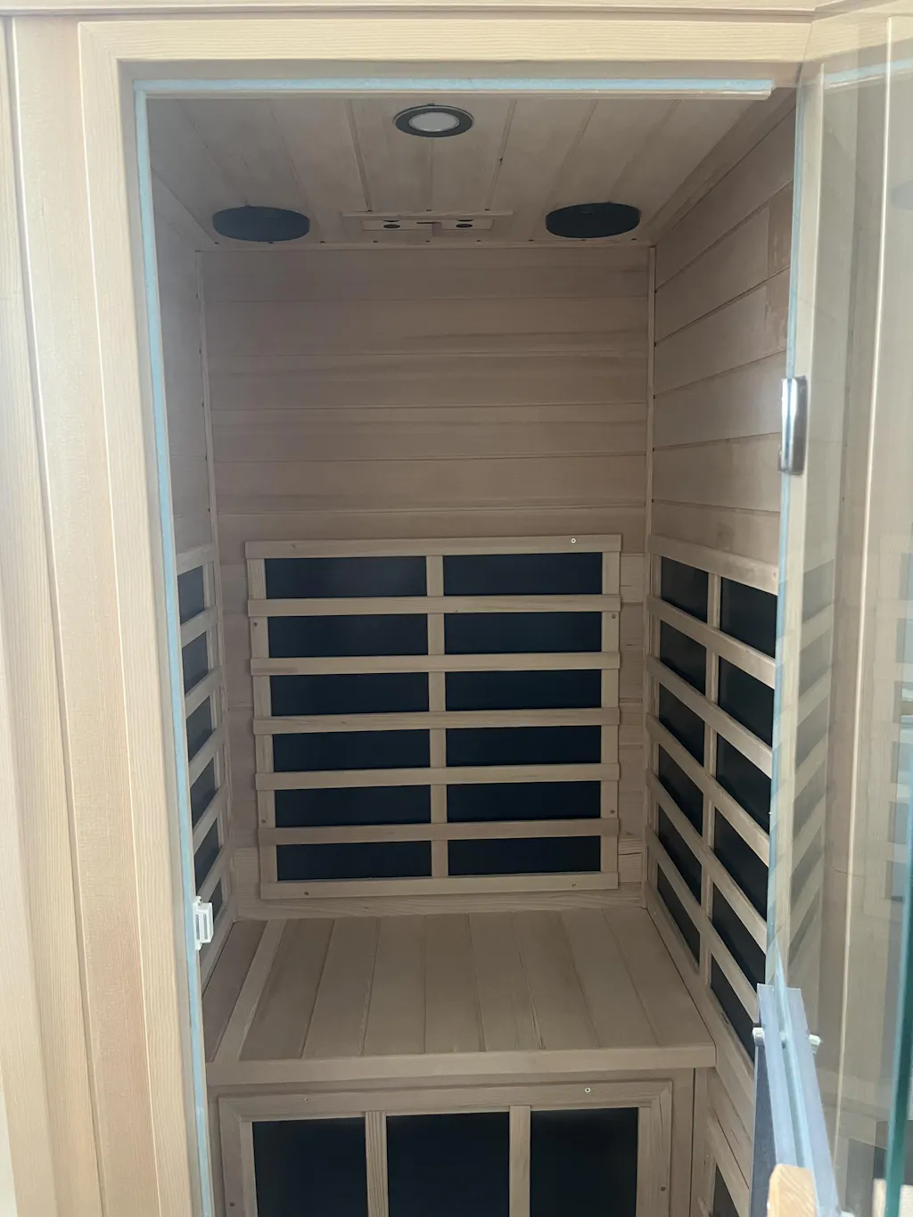 Most infrared sauna brands lack front door heaters, but our Purity-906MH saunas boast large carbon panel heaters that envelop you from all sides, offering a 360-degree experience.