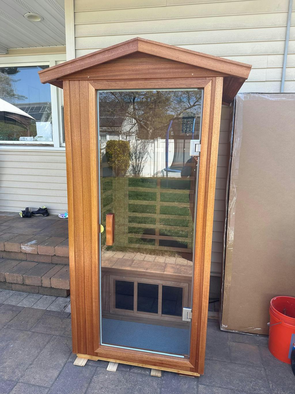 Pre-order | Wearwell-901VT 1 Person Outdoor Ultra-Low EMF Far Infrared Sauna in Mahogany | Restocking Late February